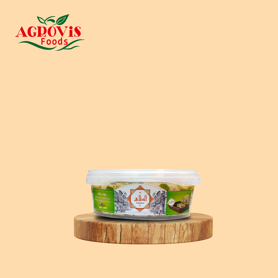 حلاوة طحينية بالفستق الحلبى من الظاهر تجمع بين طعم السمسم الطبيعي وجودة الفستق الفاخر، بطعم غني وقوام ناعم. مثالية لعشاق الحلاوة الطحينية بطابع فاخر ومذاق مصري أصيل.