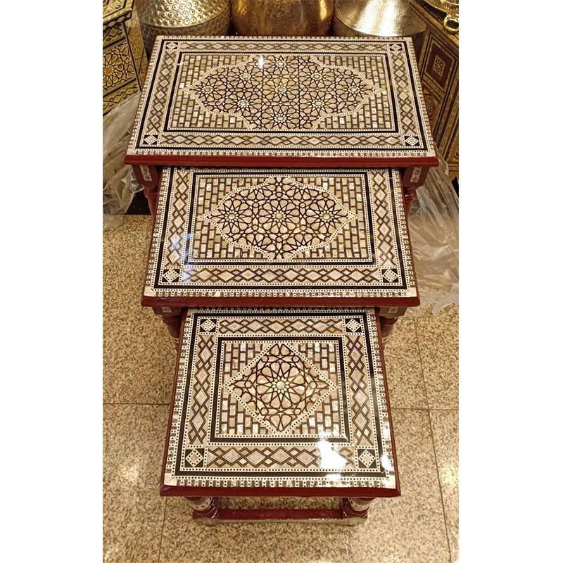 3طاولات، قادرة على التوافق مع معظم الديكورات للاستخدام في غرفة المعيشة مرصعه بالصدف وتعد طاولات الدرج تستخدم في غرفة المعيشة الخاصة بك لاستخدامها كطاولات للوجباتالخفيفة. . يسهل تداخلها وطيها لتناسب ا لتصاميم الرائعة