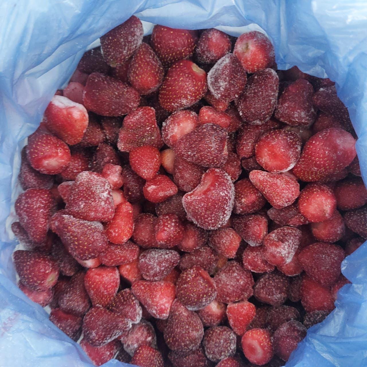 فراولة مصرية مجمدة عالية الجودة، معالجة بتقنية التجميد السريع الفردي (IQF) للحفاظ على الطعم والقيمة الغذائية. مستخرجة من مزارعنا المعتمدة.