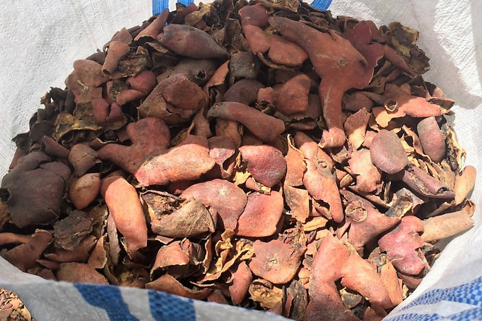 الشكل: قشر مجفف كامل أو مسحوق
