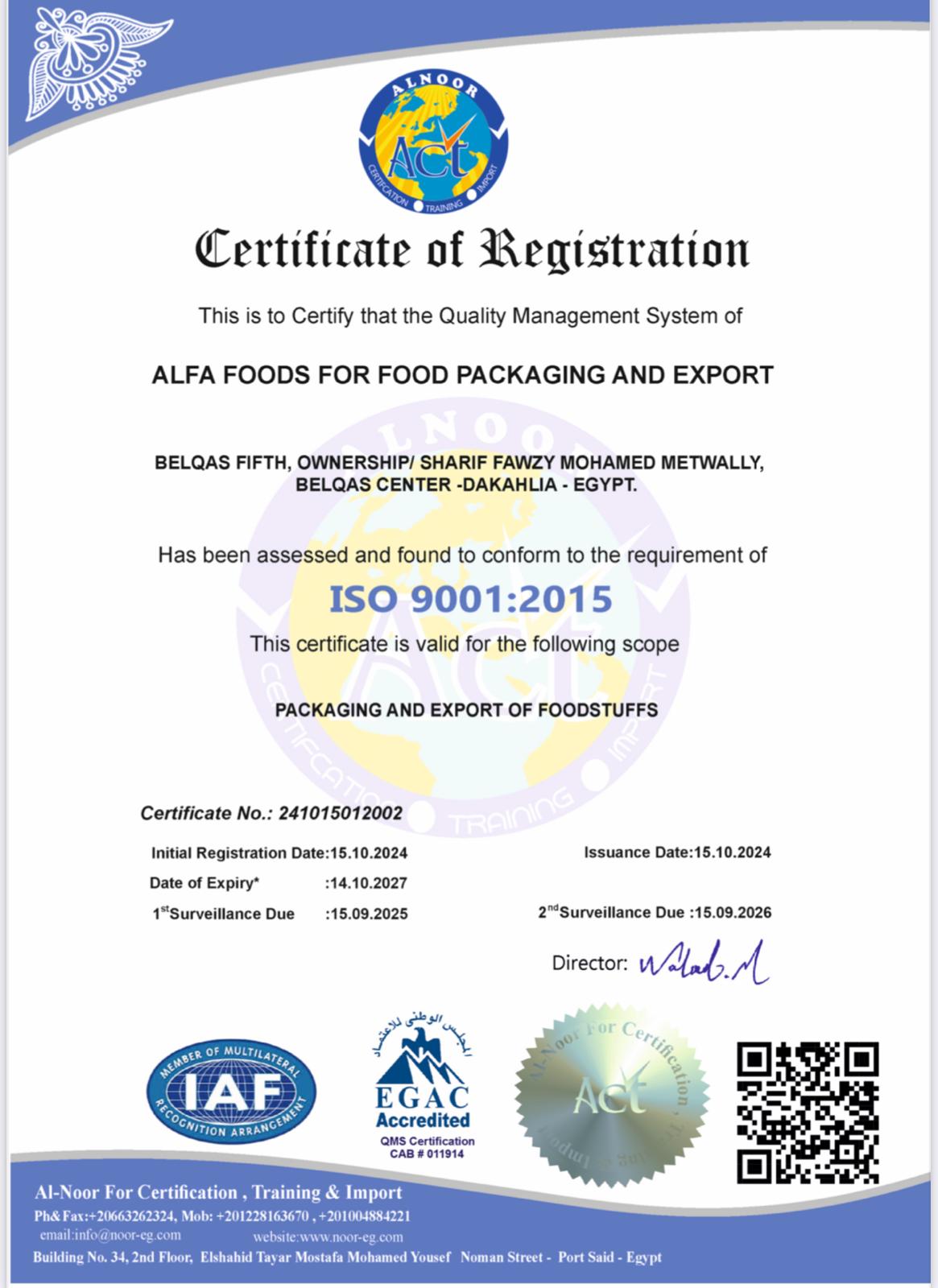 الشركة شركة الفا فودز لتعبئة وتغليف المواد الغذائية والتصدير Egypt