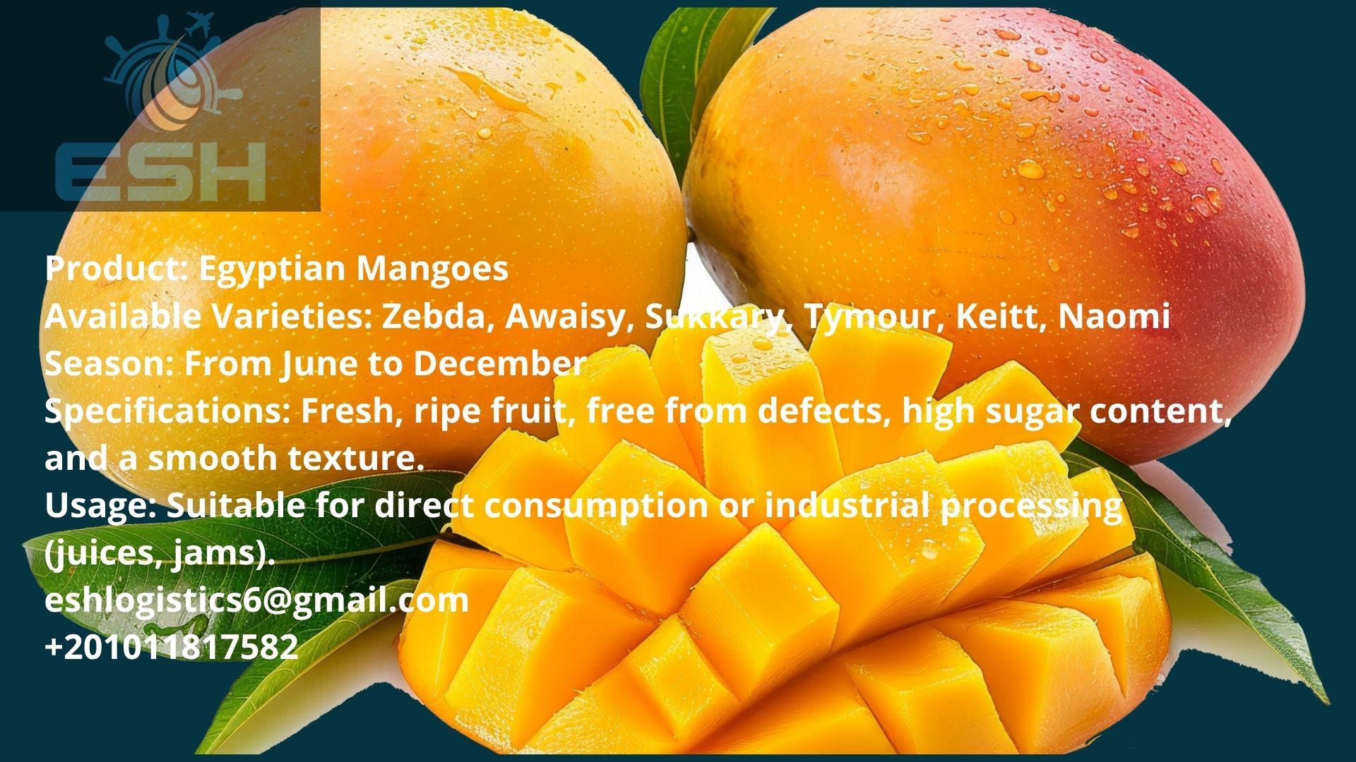 مانجو المنتج: مانجو مصرية الموسم: من يونيو إلى ديسمبر المواصفات: ثمرة طازجة – ناضجة – خالية من العيوب – نسبة سكر مرتفعة – قوام ناعم الاستخدام: للاستهلاك المباشر أو التحضير الصناعي (عصائر – مربى)